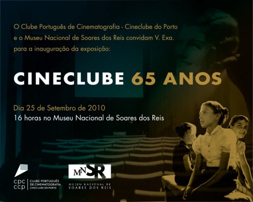 Neste sábado, pelas 16 horas, é inaugurada a exposição CINECLUBE 65 ANOS, relativa ao 65º aniversário do Cineclube do Porto, no Museu Nacional Soares dos Reis.