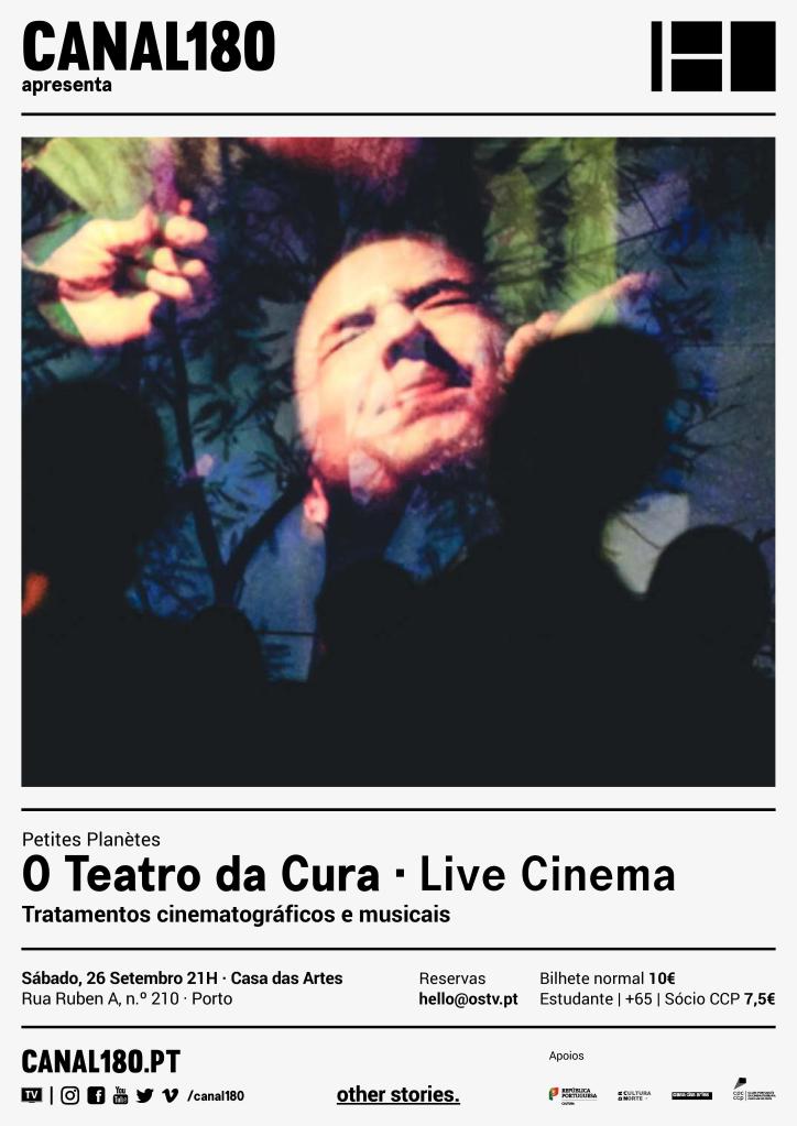 “O Teatro da Cura” é uma meditação sônica baseada em gravações musicais colecionados por Priscilla Telmon e Vincent Moon.Em Portugal, vão tocar ao vivo, discutir, mostrar filmes de todo o mundo e trocar ideias, durante duas horas. Uma poesia do íntimo, uma viagem imóvel, uma arte como o cuidado, trazendo novas alternativas ao mundo e experimentações suaves para os nossos corpos e almas recém-desconfiguradas.A Esta exibição faz parte de uma série de exibições do Canal180 com a Petites Planètes em Portugal.