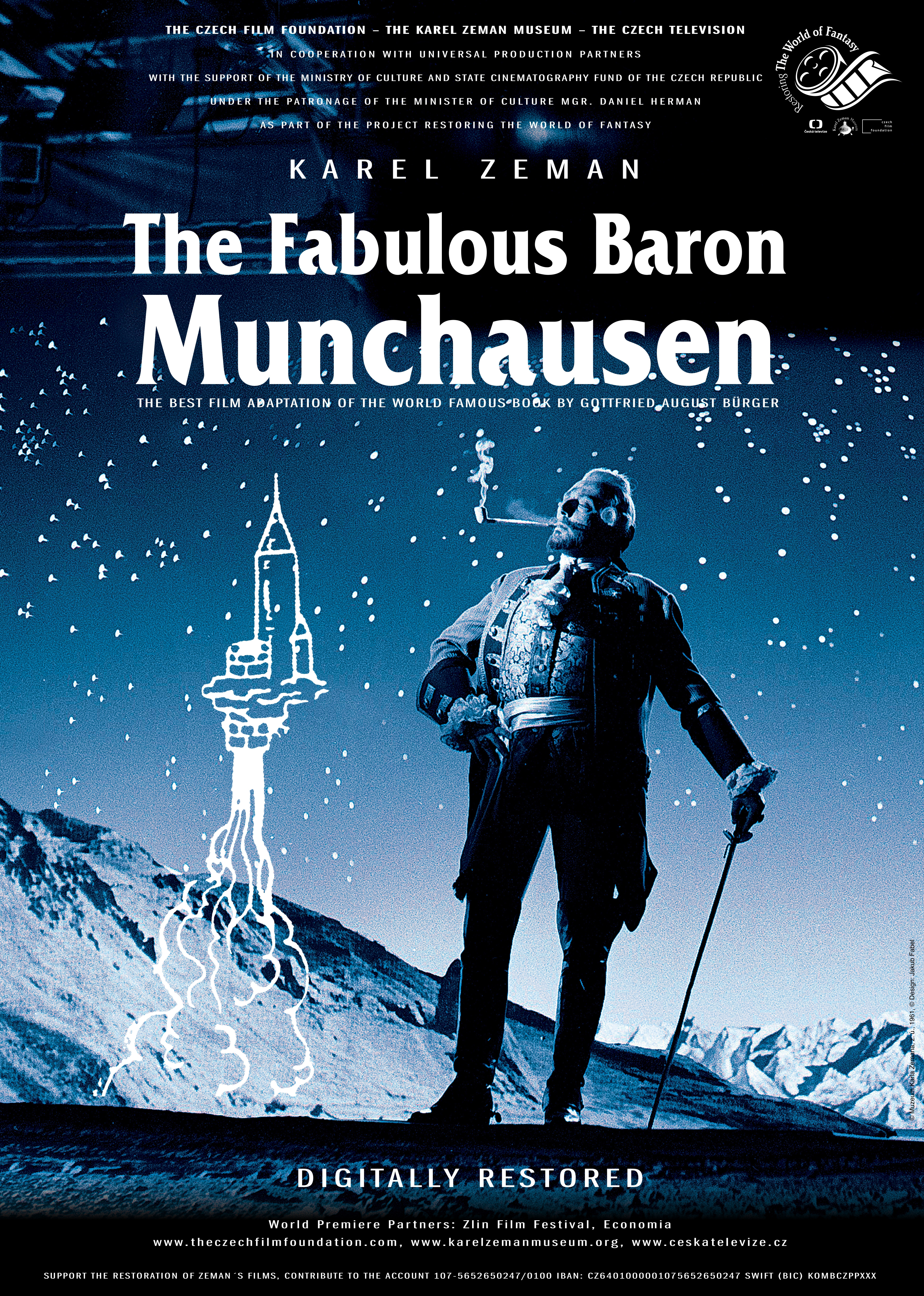 Obra-prima do realizador checo, que ficou conhecido por combinar imagem real e animação, O Barão Aventureiro / The Fabulous Baron Munchausen parte dos contos de Rudolf Erich Raspe sobre o lendário barão cujas aventuras mirabolantes o levam da Lua à Turquia do século XVIII. Tido como um precursor dos efeitos especiais que viriam com o advento das imagens geradas por computador, Karel Zeman mistura a ação filmada a preto e branco com stop motion, colagens, marionetas e cenários pintados para nos levar numa surpreendente viagem caleidoscópica. Vencedor do Grande Prémio de Cannes.