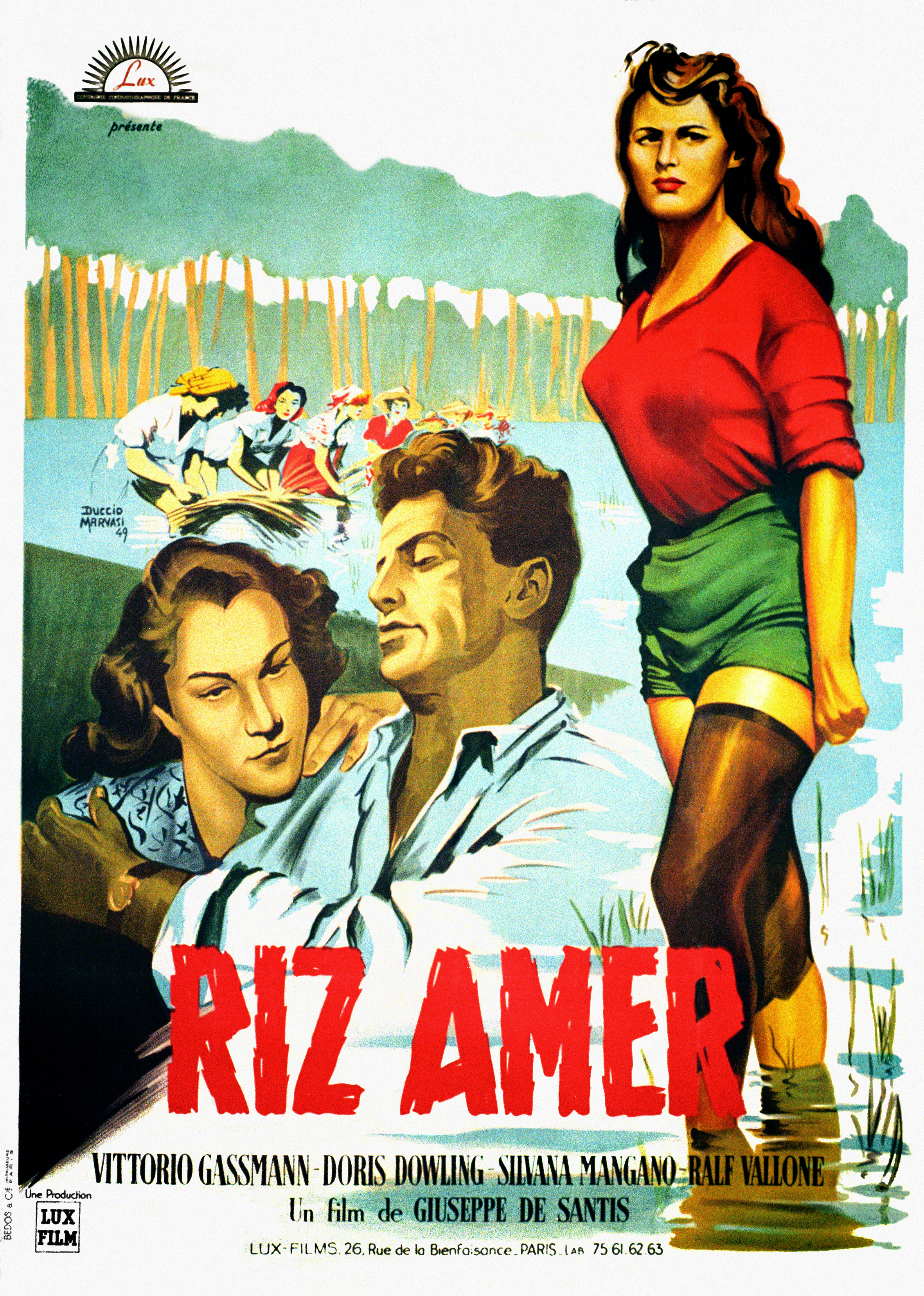 Considerado o primeiro grande êxito de bilheteira do Neorrealismo italiano, Riso amaro chegou a Portugal envolto em polémica e foi proibido apenas duas semanas após a estreia. O filme, protagonizado por Silvana Mangano e marcado pelo erotismo, acompanha Francesca e Walter, dois fugitivos que se misturam entre as mondadeiras de arroz no norte de Itália — onde conhecem a ingénua Silvana. Enquanto Francesca aprende o ofício, Silvana deixa-se seduzir por Walter, até que um assalto muda o rumo dos três. Nomeado para a Palma de Ouro em Cannes, este drama é visto como a obra-prima de De Santis e um marco do cinema italiano.
